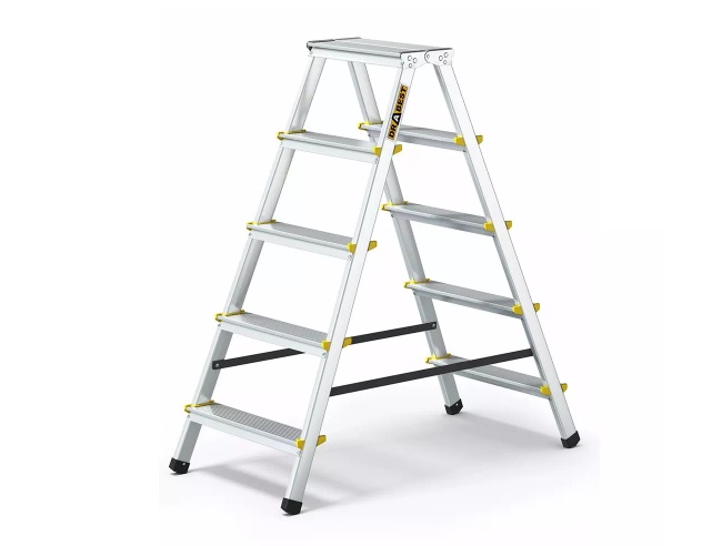 Aluminijske samostojeće ljestve s obostranim pristupom kompaktnih su dimenzija i vrlo praktične za korištenje i skladištenje. Zbog nosivosti od čak 150 kg, osim za kućnu, mogu biti i za profesionalnu uporabu. Širina gazišta od 80 mm omogućuje duže stajanje na ljestvama bez umaranja, a platforma je dizajnirana tako da se na ljestvama može i sjediti prilikom obavljanja nekog posla. Platforma i gazište su osigurani od klizanja, a stope protiv proklizavanja i prevrtanja.