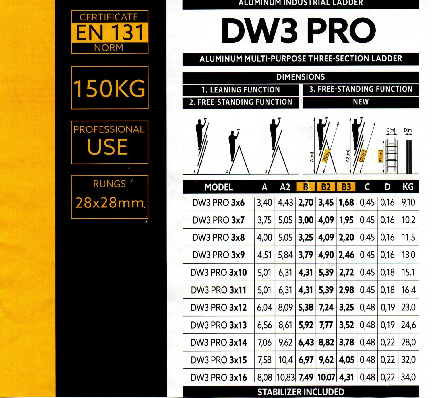 Ljestve trodjelne alu 3×15 gazišta
